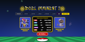 - On joue avec les éléments de l'Univers Pokémon, pour remplacer (Pierre, Feuille,Ciseaux) du Shifumi d'Origine.